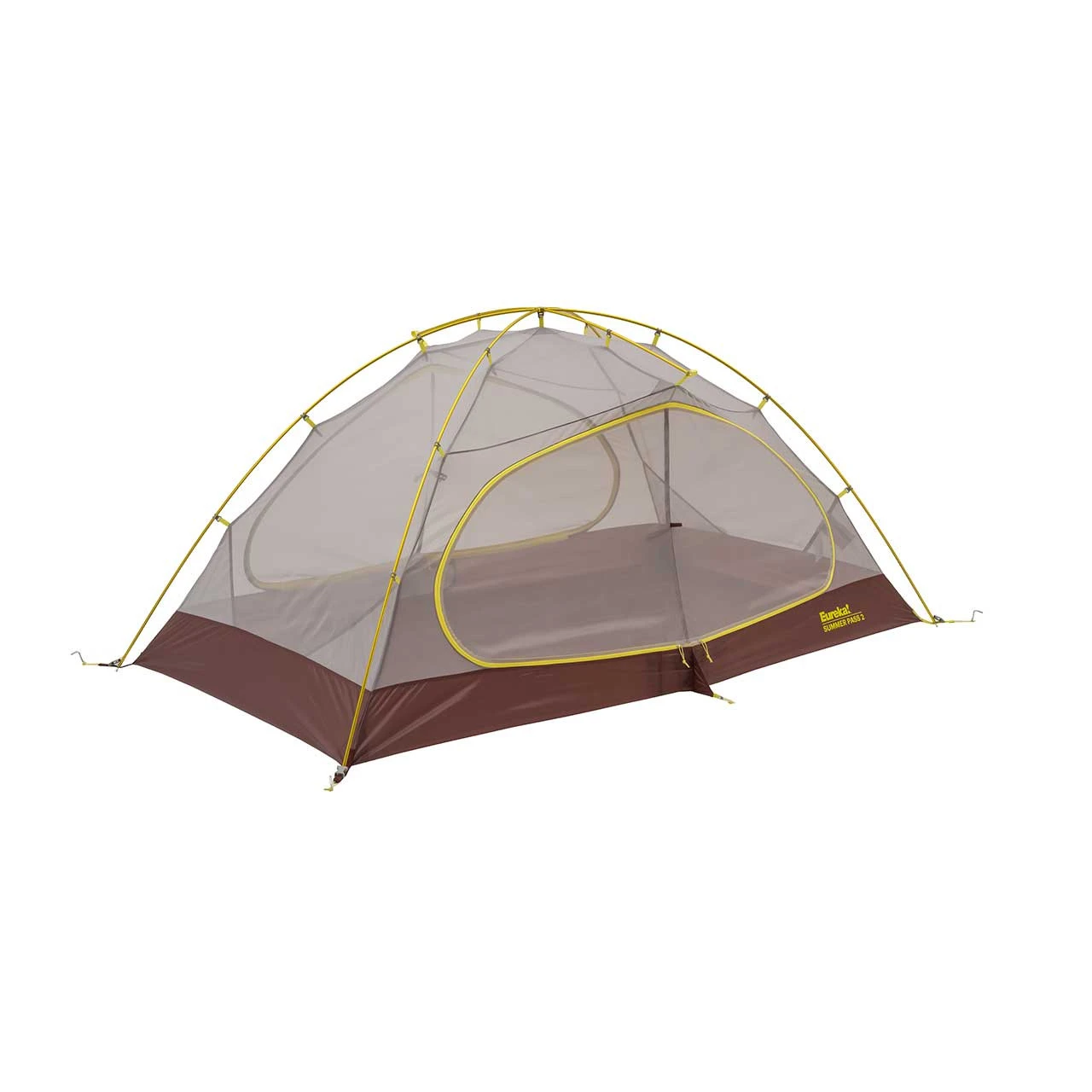 Built for any three season backpacking adventure, the Eureka Summer Pass 2 backpacking tent features a hubbed pole design with press fit clips for quick, easy set up and a lightweight, sturdy aluminum frame to handle whatever Mother Nature decides to dish out in the high country. The light and airy no-see-um mesh canopy keeps the bugs out and gives you unfiltered views of the night sky on those hot summer nights. Dual doors keep you from having to climb over each other and the two large vestibules provide dry storage for your gear when shut in by weather. The included gear loft and several interior pockets give you a place to store small items and a vented fly facilitates air flow and helps to control condensation. Do you camp in gravel or rocky conditions? The included footprint will protect the floor of your tent for years to come.