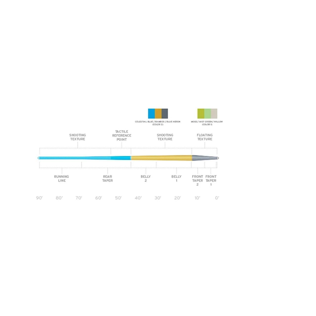 - Floating Texture on the tip traps air for superior flotation and roll casting